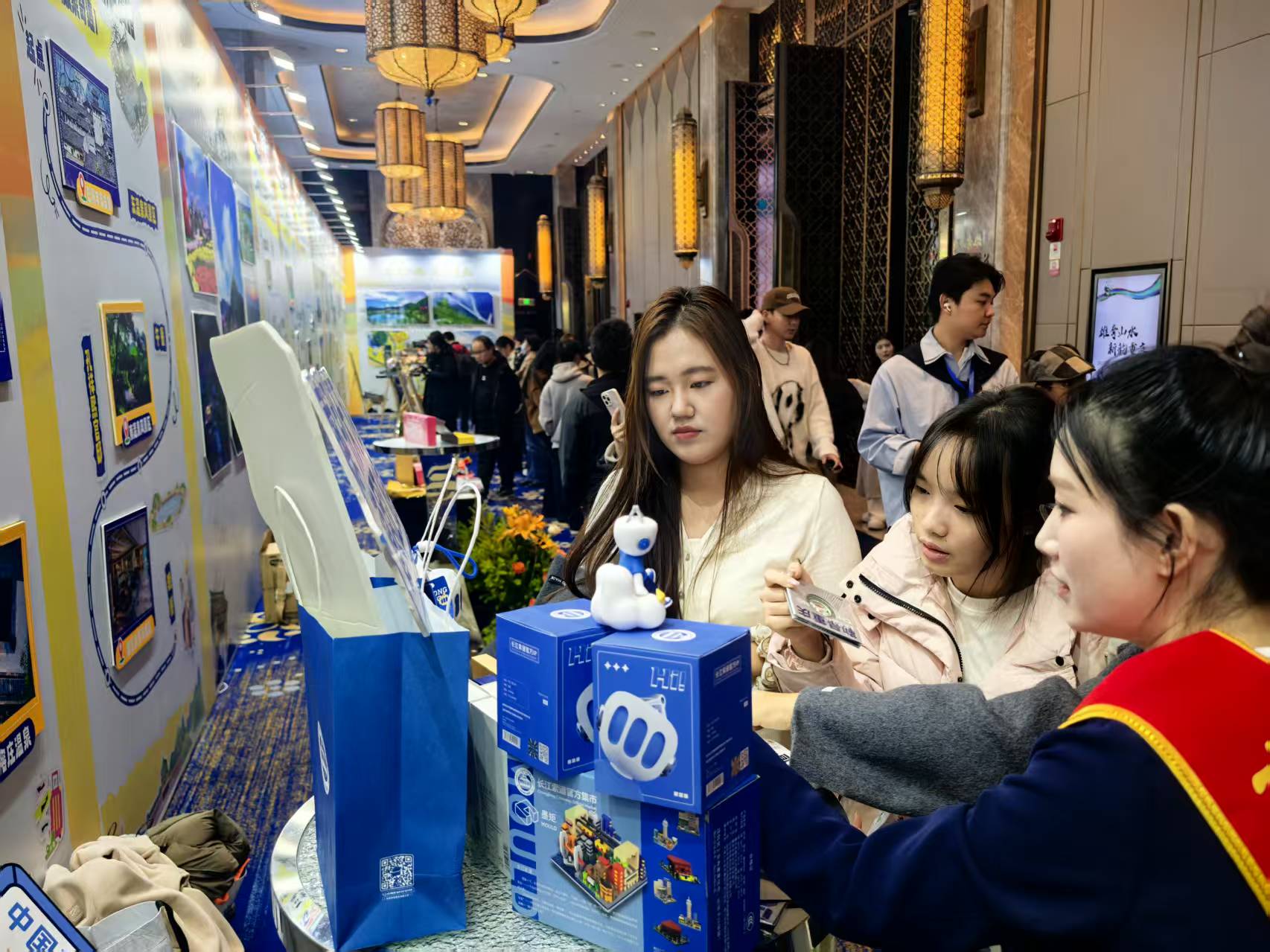 与专题推介会同步开启的,还有巴蜀味十足的互动集市。集市划分“文旅产品展示区、巴蜀文旅线路展示区、温泉线路展示区”三大功能区,重庆各区县文旅部门工作人员现场介绍,让乌鲁木齐市民沉浸式感受重庆文旅的多元魅力。
