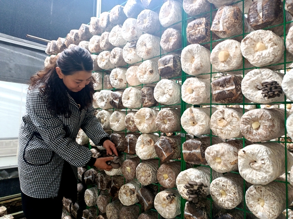 “去年我家利用闲置的老房子种植了2万棒蘑菇,每一个菌棒采收蘑菇1.2至1.5公斤,收入在7万元左右,挺不错的。”新发村村民马庆芬笑着说。