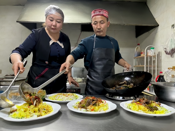 一次偶然的机会,来店里消费的游客帮她拍了一段制作奶茶的短视频发到网上,没想到收获了很多网友留言:“想尝尝木垒的特色美食”“有没有线上买特产的渠道”。这个意外的收获让努尔亚西看到了新商机。于是她跟着儿子学习使用智能手机,开通了木垒乌克勒农家院抖音账号,直播分享美食制作过程、草原风光和民俗文化。此外,她还报名参加电商培训班,学习管理经验,白天忙着接待客人,晚上熬夜学习拍摄剪辑。她的直播没有华丽的布景,却凭着真实、接地气的风格圈粉无数,直播间里的订单也越来越多,不少网红主播特意驱车前来打卡。如今,努尔亚西的农家乐已扩大到600多平米,在这里不仅能品尝到特色美食,还能欣赏民族歌舞。