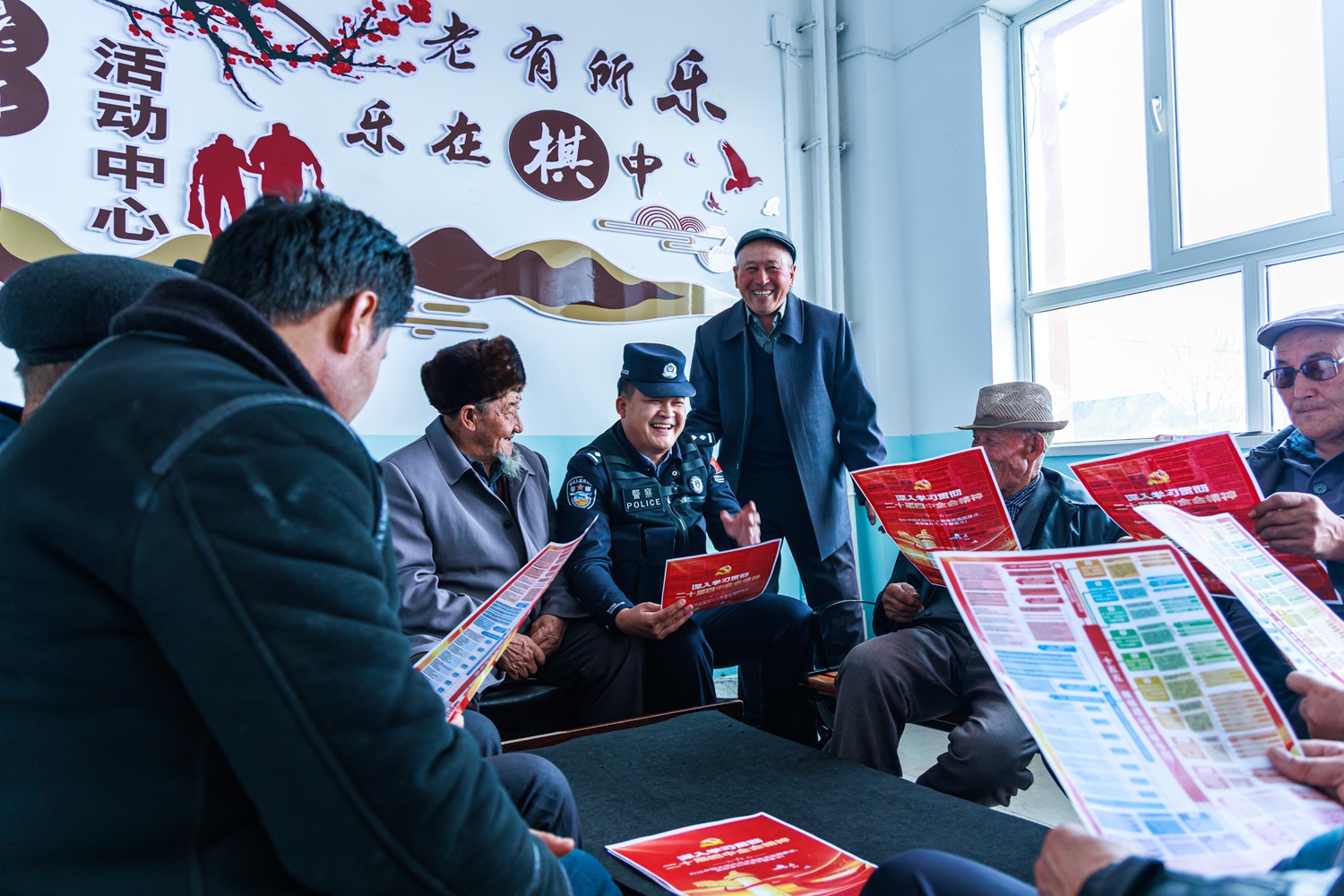 洪纳海边境派出所民警在辖区老年活动中心向辖区老人宣讲二十届四中全会精神,将国家的好政策说到老人们的“心坎里”。
