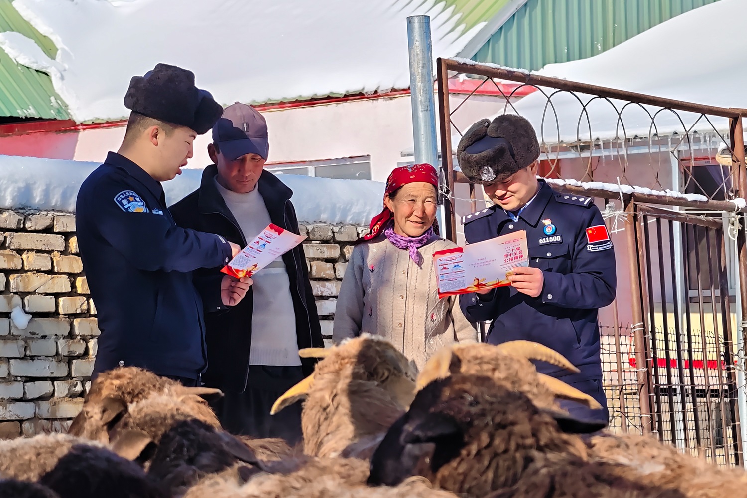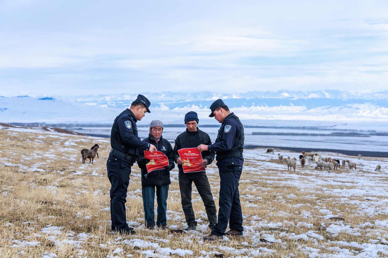 洪纳海边境派出所民警走进冬牧场,向牧民宣讲二十届四中全会精神,把党的“好声音”传到“最后一公里”