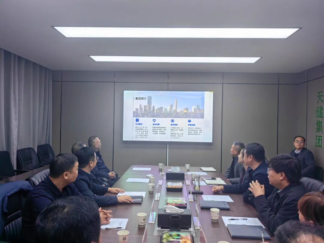 在宝鸡市宝鸡天健医药控股集团有限公司,考察团与集团高层举行产业对接座谈会。双方围绕物流枢纽建设、产业互补、市场拓展等核心议题进行了深入交流,并达成多项合作共识。