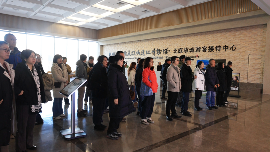 当天上午,与会专家们集体前往丝绸之路北庭故城遗址博物馆、北庭故城遗址、北庭高昌回鹘佛寺遗址进行实地参观。在专业讲解员的引导下,嘉宾们沿着遗址步道缓缓前行,详细聆听北庭故城的历史沿革、考古发掘成果及保护修复历程。从高昌回鹘时期的宗教建筑遗存到唐代北庭都护府的行政中心遗址,每一处遗迹都引发了专家学者的浓厚兴趣。大家不时驻足观察,就遗址本体保护、考古资料整理研究等问题展开现场交流,纷纷表示北庭故城作为多民族文化交融的实物见证,其历史价值、艺术价值和科学价值不可估量。