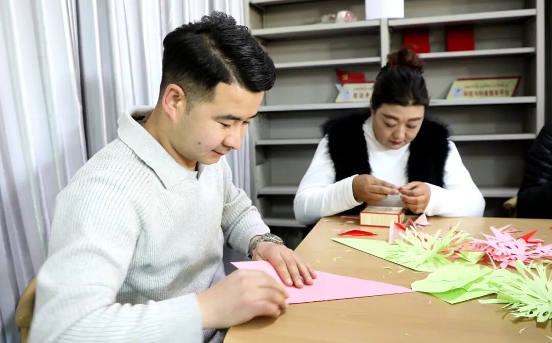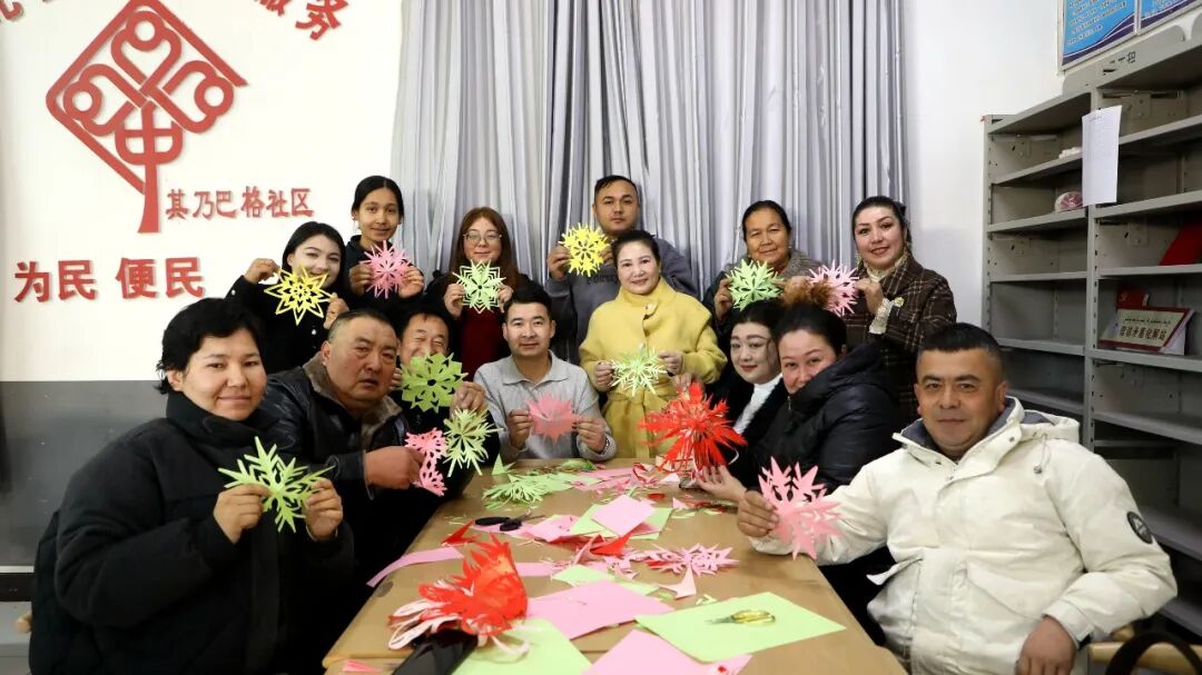 剪纸体验区同样气氛热烈。在图书馆工作人员的讲解和示范下,居民们一步步学习折纸、画样、剪裁。伴随着轻轻的剪刀声,普通的彩纸在指尖变幻出一片片精美的雪花图案。现场笑语不断,洋溢着创作的喜悦。