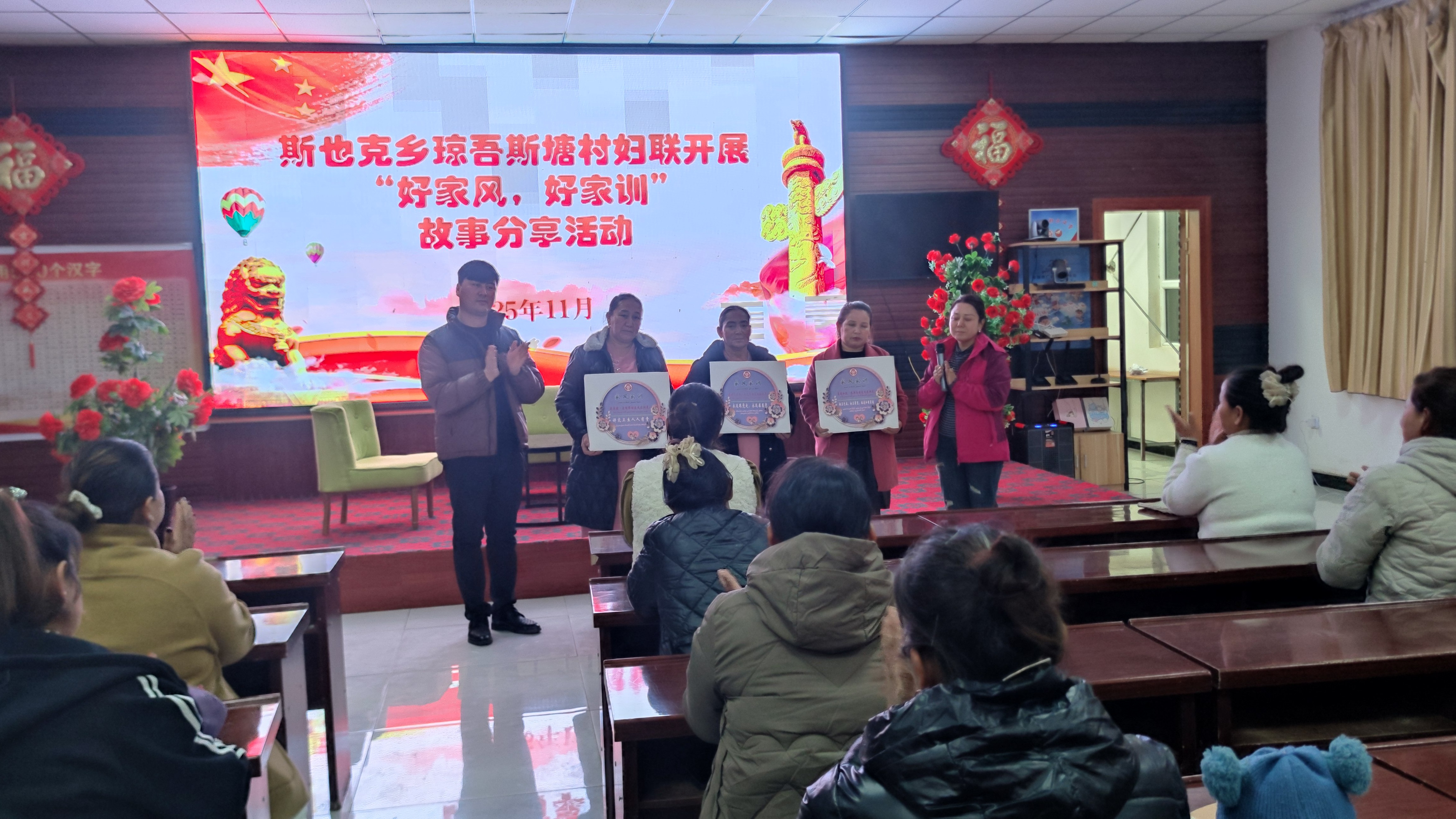 为深入弘扬中华优秀传统文化,培育文明乡风、良好家风、淳朴民风,近日,于田县斯也克乡琼吾斯塘村妇联以“传承好家风、涵养好家训”为主题,举办了一场家风家训故事分享会。此次活动邀请了村内20余户家庭代表齐聚一堂,共话家风故事,共传美德力量。