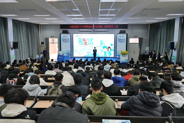 程奔介绍了中国能建企业概况、主营业务、产业布局及核心优势,全面解读了人才培养计划、薪酬福利政策、招聘岗位设置等相关信息,并就学生普遍关心的简历投递时间、报名渠道等具体流程作出了详细说明。