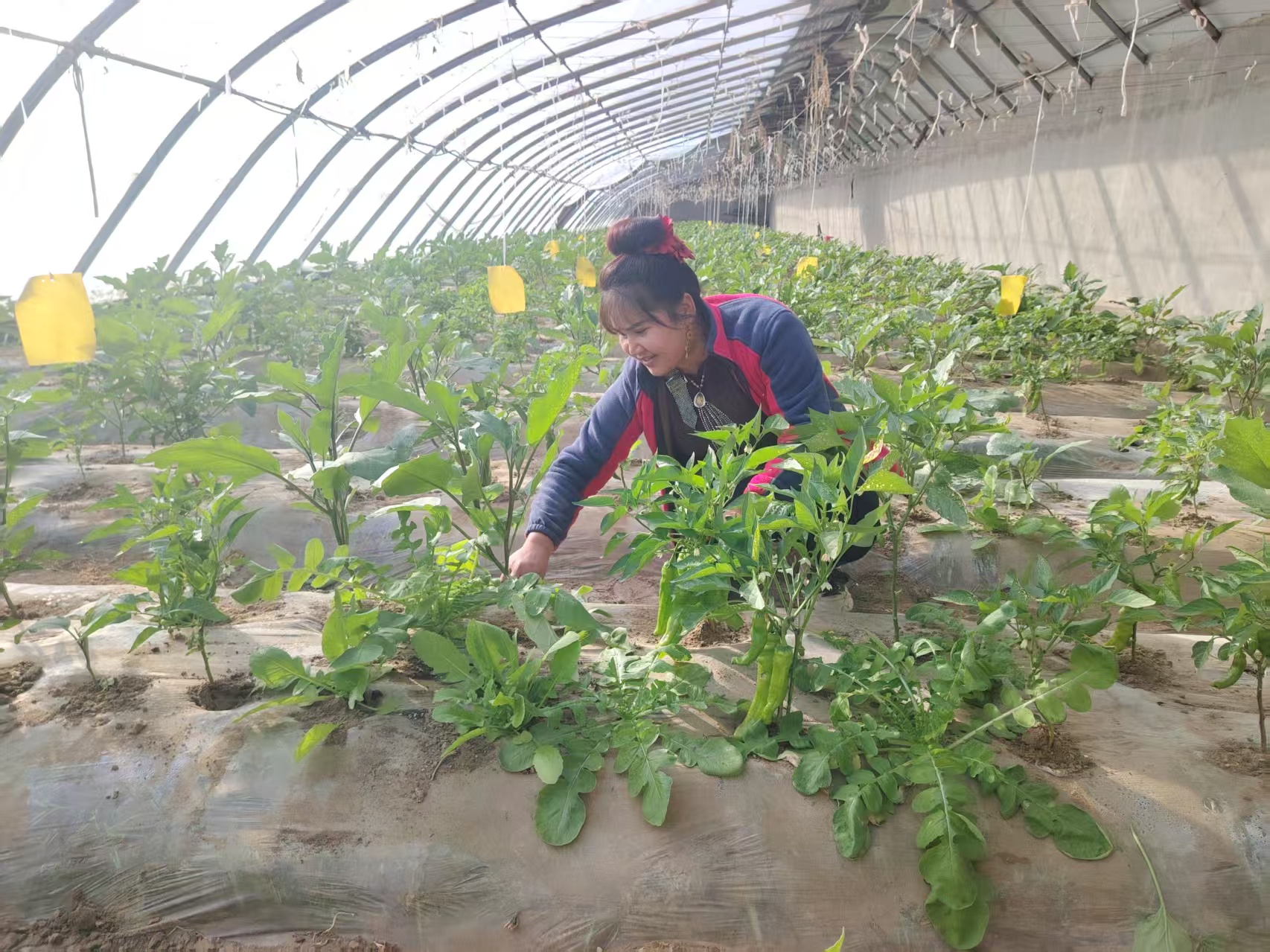 2024年,伊巴代提•阿吾拉毅然开启了大棚种植的创业之路。她在4座大棚里种满了辣椒、番茄与草莓,凭借着悉心的照料,当年便收获了3万元的收入。这份收获让她坚定了扩大种植规模的信心。今年,她将大棚规模扩大到了6座,并且持续优化果蔬品种。通过科学管理,果蔬的品质得到了稳步提升。她还结合市场供需情况,灵活调整种植结构。预计今年大棚收入能达到5万元,较去年实现了大幅增长。棚内每一颗成熟饱满的果蔬,都是她早出晚归、精耕细作的成果,承载着她对美好生活的殷切期盼。