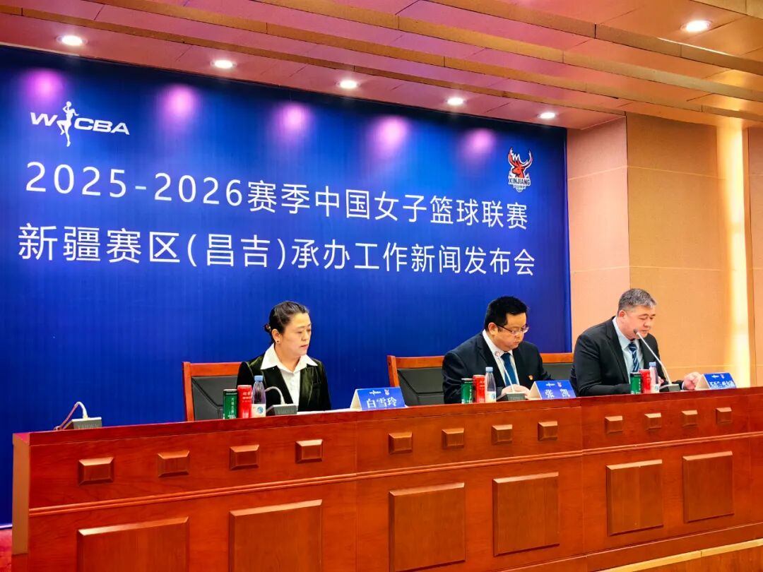 图为2025—2026赛季中国女子篮球联赛(WCBA)新疆赛区(昌吉)承办工作新闻发布会在昌吉体育馆新闻发布厅举行。荷苒•马汗摄