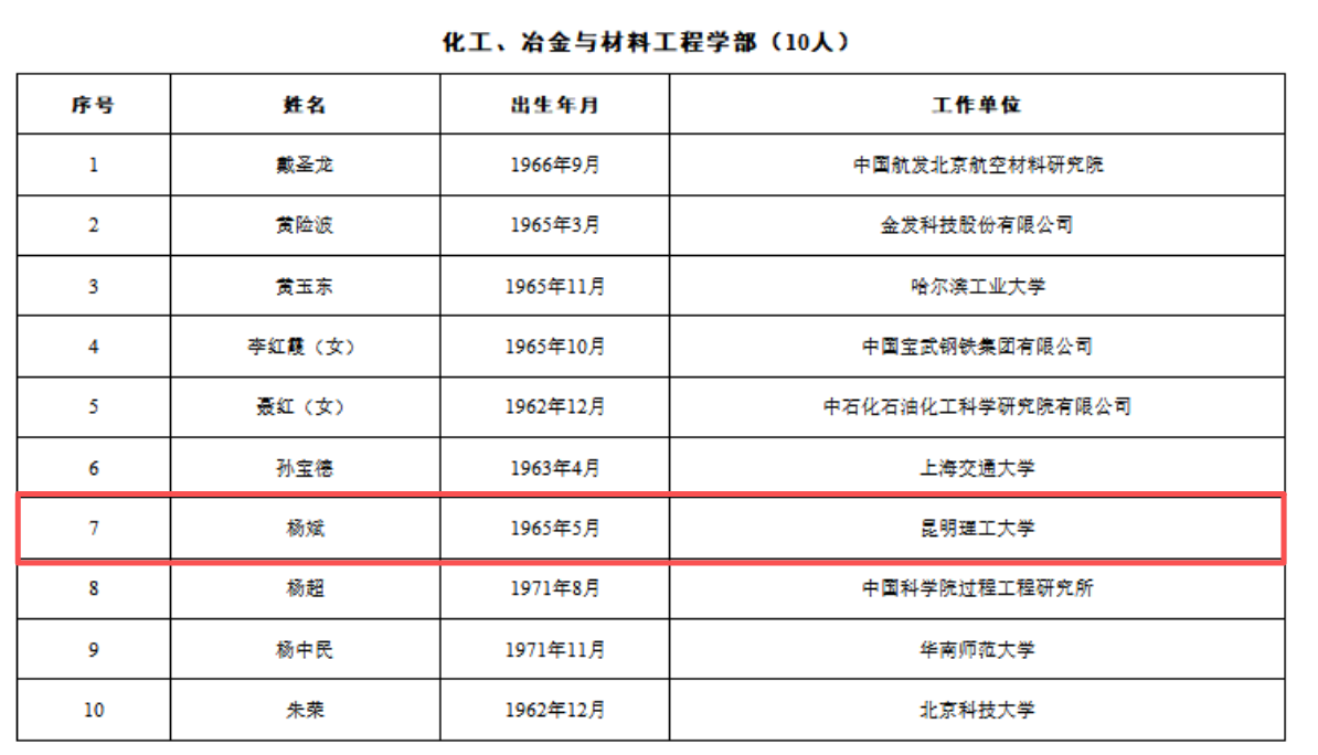昆明理工大学杨斌当选中国工程院院士在滇工作院士增加至18名