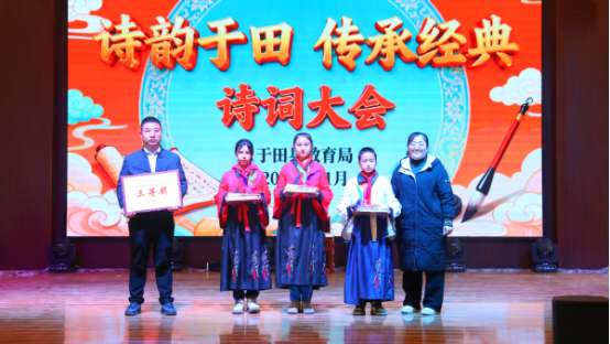 为深入贯彻落实立德树人根本任务,扎实推进文化润疆工作,近日,于田县教育系统“诗韵于田·传承经典”诗词大会在于田县青少年活动中心举行。全县教育系统师生代表齐聚一堂,以诗为媒、以词会友,共赴一场中华优秀传统文化的盛宴。