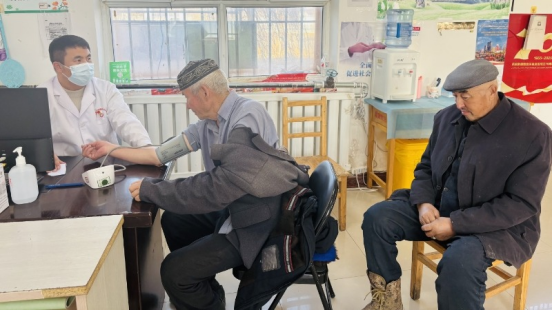 11月20日,托里县铁厂沟镇中心卫生院组织医护人员到铁厂沟镇阿勒帕萨勒干村卫生室,开展健康服务活动,把优质医疗资源送到村民“家门口”。