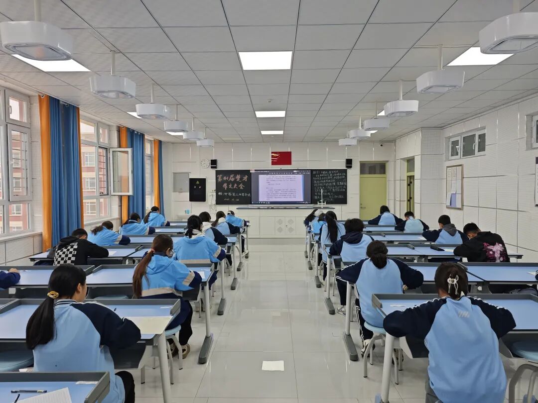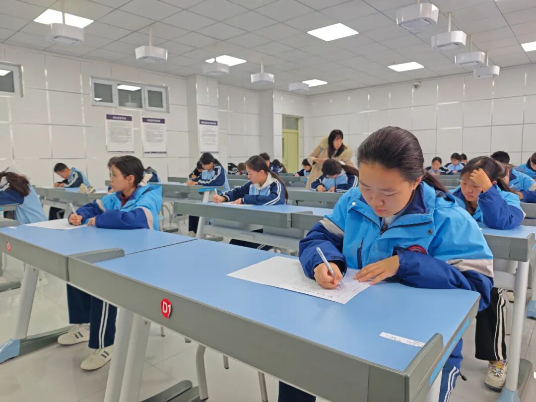 当天,随着清脆的铃声响起,比赛正式开始。在精河县第三中学的各考场内,学生们精神抖擞,或低头沉思,构思文章框架,或奋笔疾书,将心中的灵感化作一行行生动的文字。老师们则在一旁题写题目、默默守候,不时投去鼓励的目光,为学子们加油鼓劲,营造出一种既紧张又温馨的考试氛围。