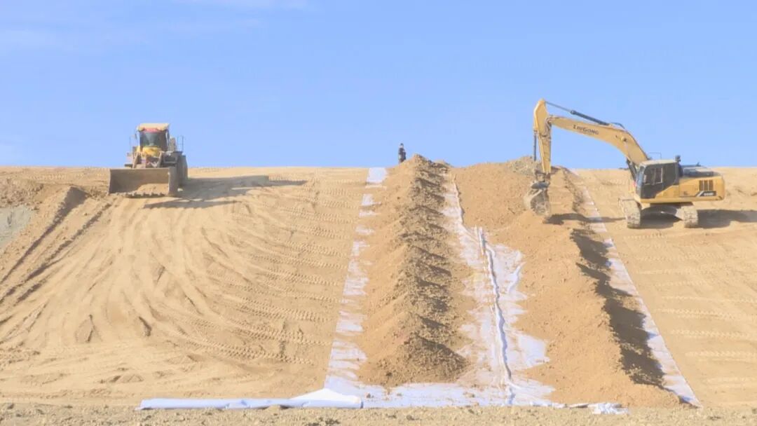 近日,木垒县东城镇黑山头村的塘坝建设现场一片忙碌:挖掘机、推土机轰鸣作业,加紧土方开挖和库盘整形;工人们忙着铺设防渗膜,用热熔焊接机仔细处理每一道接缝,确保防渗达标。