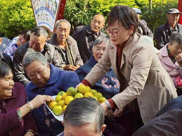 节假日里,社区老人与孩子们时常相聚校园:老人们带着自家种的蔬果教孩子们辨认品种,孩子们为老人表演精心准备的节目、牵着老人的手散步聊天,欢声笑语此起彼伏。
