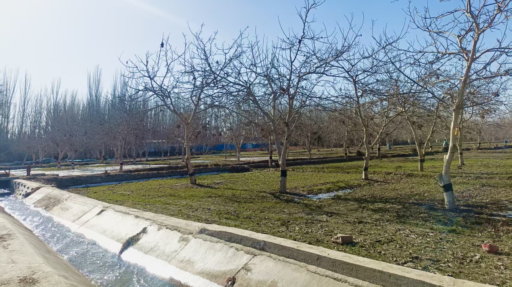 在于田县加依乡巴什萨亚提拉村的麦田里,清澈的水流顺着整修一新的灌溉渠道蜿蜒流淌,清澈河水浸润连片麦田,滴灌设施有序运转,水珠精准滴灌麦苗根系,高效滋养麦苗稳健生长。田间地头农户们忙着开沟、引水、浇地,管护灌溉设施,铁锨翻动土壤的声响与水流潺潺声交织,田间地头一派繁忙有序的冬管景象。湿润的泥土里满是来年丰收的期许,每一寸麦田都在“越冬水”的滋养下积蓄生长力量。