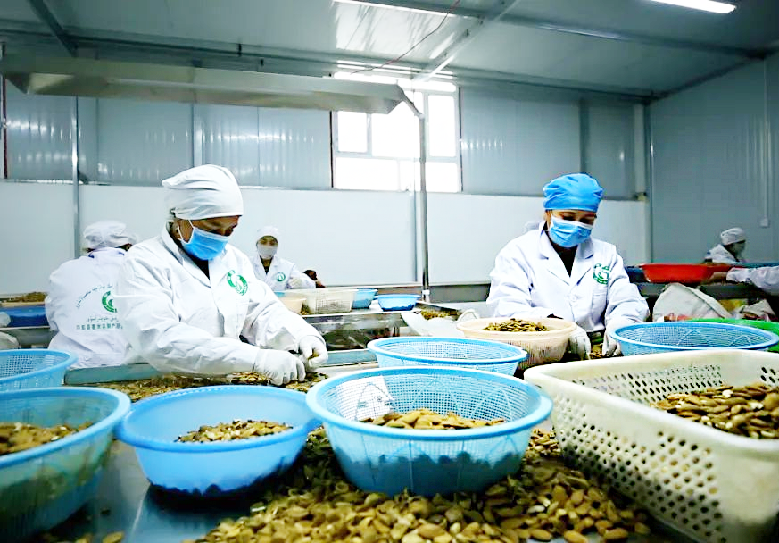 该公司总经理孙磊说:“通过引进多条先进生产线,我们年收购巴旦木、核桃等原料超2000吨,产品热销北上广深等一线城市。当前,我们正通过技术升级延伸产业链,带动就业的同时打响自有品牌。”