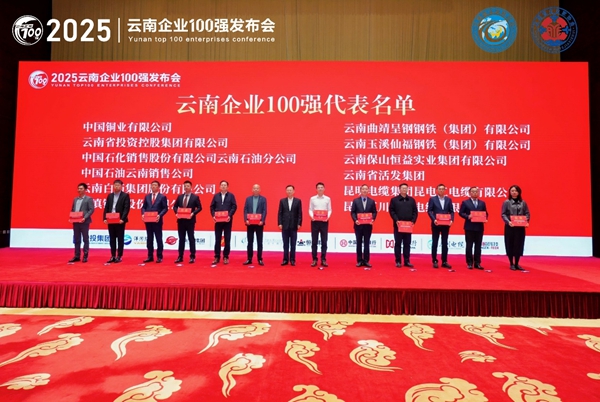 12月6日,云南省企业联合会、云南省企业家协会在昆明云南海埂会堂召开“2025云南企业100强发布会”。现场发布2025云南企业100强、制造业企业100强、服务业企业50强、高新技术企业100强、企业年度营业收入突破亿元名单,进一步凸显重点领域企业核心竞争力,同时也是云南企业发展成就的一次集中展示和经济实力的有力见证。
