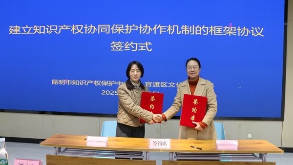 日前,昆明市知识产权保护中心与官渡区文化和旅游局达成非遗知识产权协同保护共识,在全省率先构建跨部门非遗知识产权协同保护机制。