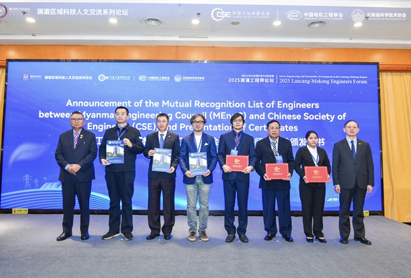 开幕式上,公布了中缅工程师互认人员名单并颁布证书。2025年,10名中国工程师通过互认获得缅甸注册受限专业工程师资格,5名缅甸工程师通过互认成为中国工程师联合体资深工程会员,实现工程师双向互认落地新突破,缅甸“一带一路”项目上将有更多中国工程师身影。