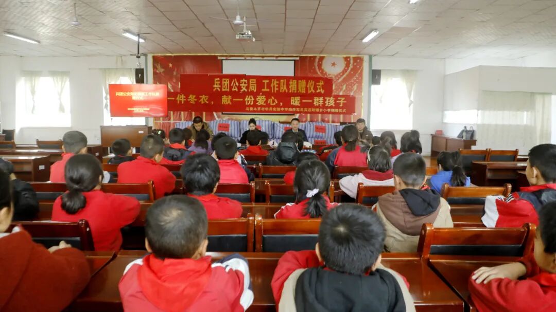 近日,新疆生产建设兵团公安局驻莎车县英吾斯塘乡吉格代巴格村工作队在英吾斯塘乡中心小学开展“爱心暖包”捐赠活动,为孩子们送去冬日温暖。