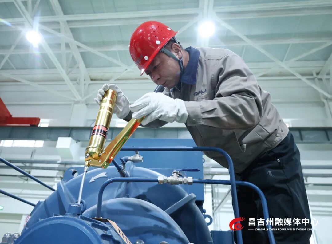 图为在昌吉市新建长输管网供热项目2号中继泵站,工作人员正在保养供热设备。付小芳摄