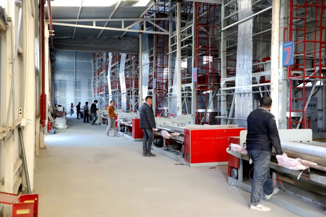 卡哈儿江•艾尔肯说:“工厂主要生产常规地膜,现有员工30余名,日产量约35吨,年产量可达5000吨。”
