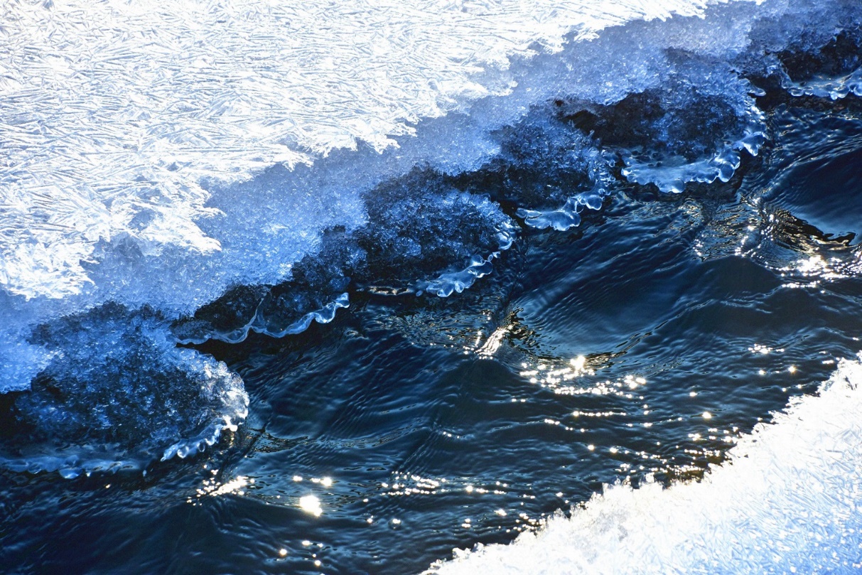 12月10日,托里县铁厂沟镇阔克塔勒河畔,水流携波光撞向冰棱,溅起半透明星子;冰花如冻浪铺就的蓝调云絮,枯枝嵌于水晶褶皱间,冰棱边缘浸满暖光,将冬日凛冽揉作轻软诗篇。(王子荣)