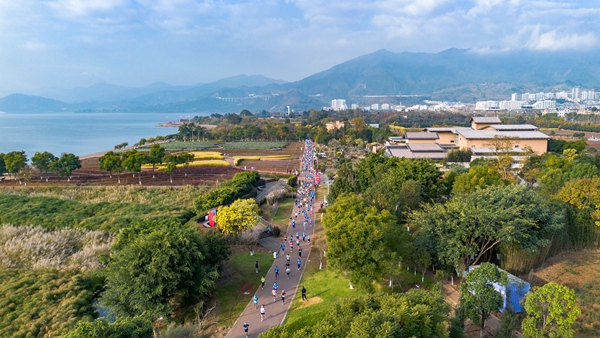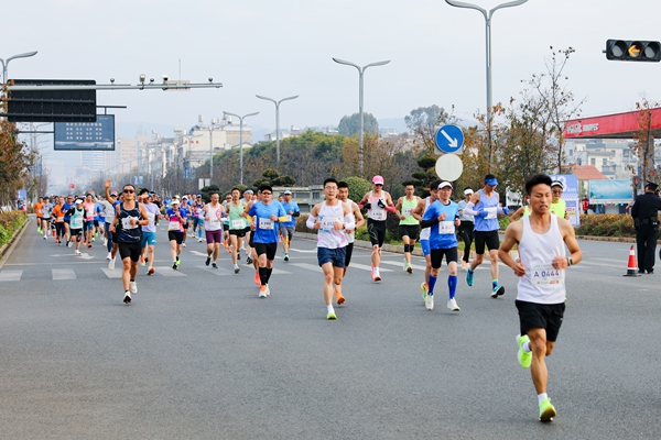 12月14日,2025云南白药玉溪抚仙湖半程马拉松在澄江市抚澄大道鸣枪起跑。这场集竞技魅力、人文底蕴与生态之美于一体的体育盛宴,吸引了来自全国各地的8000名跑者齐聚“高原明珠”抚仙湖畔,在21.0975公里的赛程中,用奔跑和汗水诠释“畅跑地球生命起源地,探秘珠江源头第一湖”的赛事主题,在冬日暖阳下,点燃抚仙湖畔的运动热情。