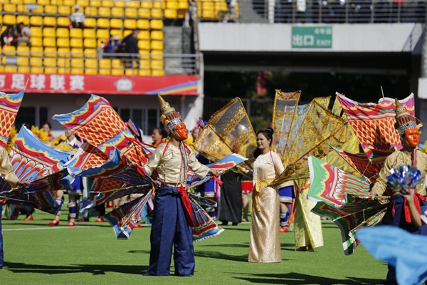 比赛开始前,临沧精心准备的三场特色文艺表演接连上演,为赛事预热。《民族团结一家亲》以优美舞姿和嘹亮歌声,诠释了云南各民族守望相助的深厚情谊;《临沧加油》旋律激昂,满含家乡人民对主场球队的殷切期盼;《踏歌彩云南》灵动展现云岭大地的多彩文化与蓬勃生机。