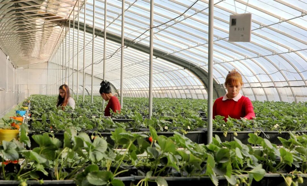 走进莎车和谱农业有限责任公司的智慧大棚,清甜的果香扑面而来,一颗颗红彤彤的草莓饱满诱人,挂满藤蔓。工人们穿梭于田垄之中,小心翼翼地将熟透的果实摘下,脸上洋溢着丰收的喜悦。