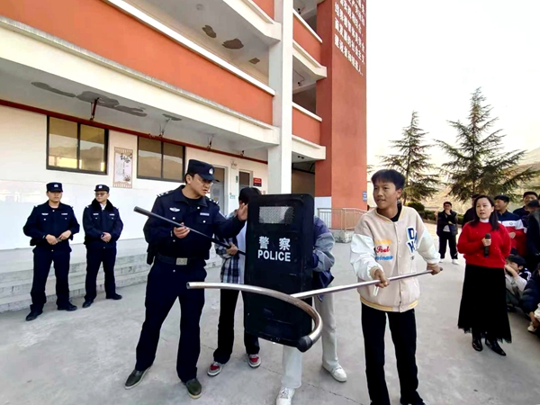 随后,民警现场讲解并示范了盾牌、钢叉等防暴器械的使用要领,指导师生进行实操练习。本次活动提升了器械使用技能和团队协作意识,增强了师生法治观念与安全防范能力。(李春亭)