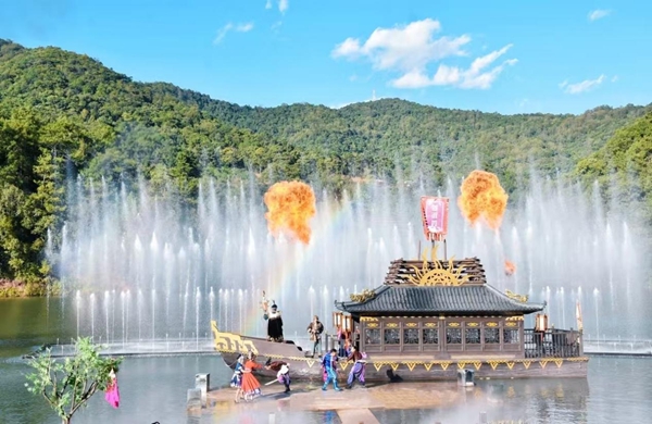 (定波湖《马帮情歌》水舞秀。普洱茶马古道遗址公园供图)