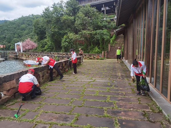 (在景区开展卫生整治。李燕勇/摄)