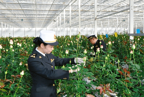 (海关关员在出口花卉种植基地开展日常监管。赵艳梅/摄)