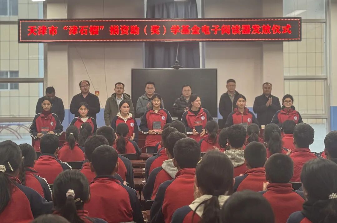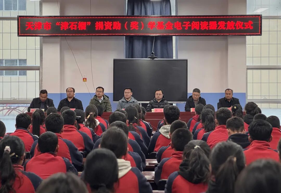 近日,天津市“津石榴”捐资助(奖)学基金电子阅读器发放仪式在于田县库尔班•吐鲁木初级中学顺利举行。天津市教育支援专项工作领导小组、社会动员专项工作领导小组、东西部协作和支援合作工作领导小组办公室,以及天津市教育发展基金会的相关代表出席了此次活动。活动现场,为该校学生捐赠了 62台电子阅读器,将天津人民的深情关怀与教育支持精准送到了于田学子手中。