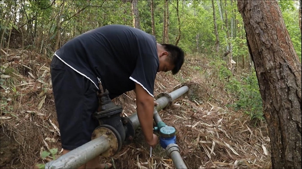 (工作人员正在检修自流水管线。大山乡政府工作人员/摄)