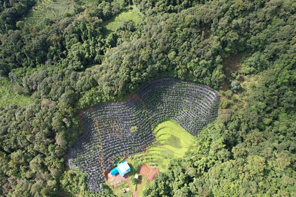 (田房村有机茶园及周边其他茶园俯瞰图)