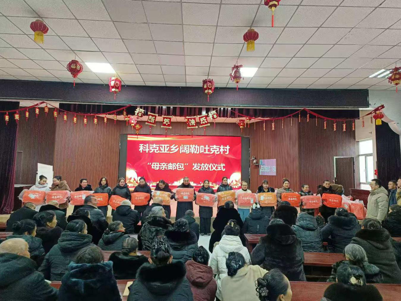 近日,在于田县科克亚乡阔勒吐克村村民服务中心,一场洋溢着温情的“母亲邮包”发放仪式顺利举行。在新疆能源集团党委和自治区妇联的大力支持下,新疆能源集团驻阔勒吐克村工作队联合村“两委”,将79份饱含着党和政府关怀的“母亲邮包”精准送到村里妇女手中,以实际行动诠释对妇女群体的关心关爱,为乡村振兴注入巾帼暖流。