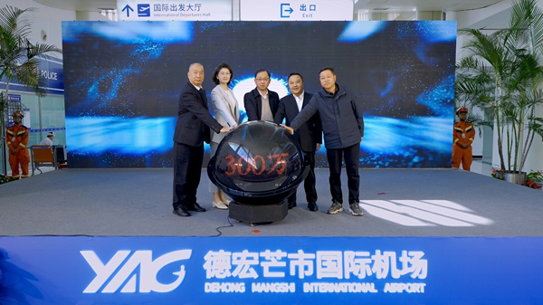 站在300万人次的新起点,德宏芒市国际机场将主动服务国家共建“一带一路”倡议和云南面向南亚东南亚辐射中心建设大局。未来,机场将以更开放的姿态拓展国际航线网络,以更创新的举措深化航旅融合发展,以更优质的服务提升旅客出行体验,在高质量发展的道路上持续迈进,为德宏经济社会跨越式发展插上“腾飞之翼”,让这座边疆空港成为联通内外、链接世界的坚实桥梁。(毕筱薇)