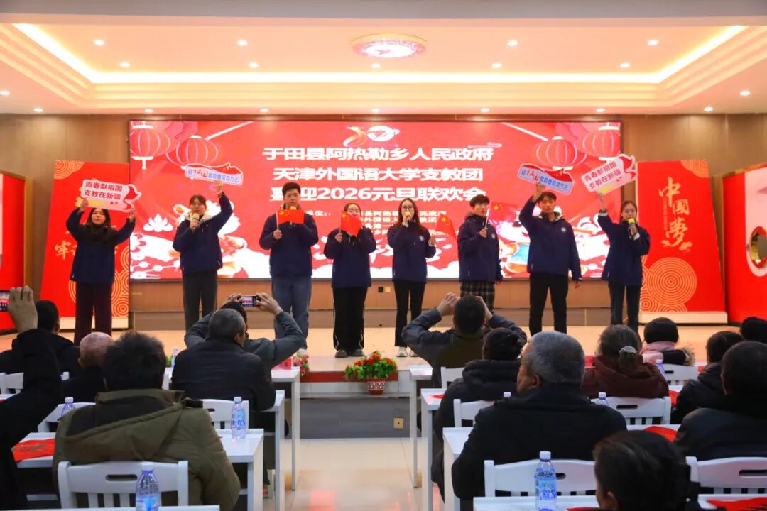 此次“喜迎2026新年联欢会”的举办,不仅为阿热勒乡群众送上了一场精彩纷呈的文化盛宴,更搭建起天津与于田两地文化交流的桥梁,进一步增进了天津外国语大学支教团与当地干部群众的深厚情谊。