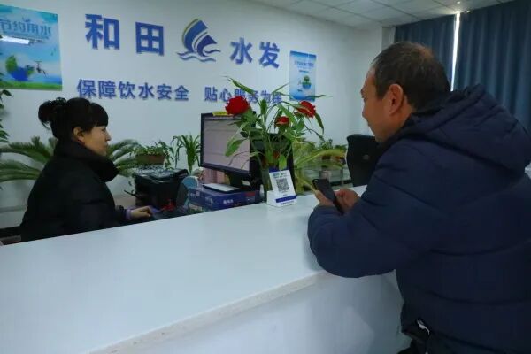 和田水务发展集团于田县有限公司工作人员在给群众办理业务。伊帕尔古丽摄