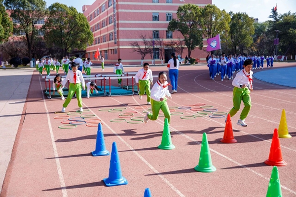 在特色展示环节,云南师范大学附属世纪金源学校的阳光大课间活力绽放,啦啦操、花样跳绳等体育艺术活动,生动诠释了“以体育德、以体启智”的育人理念。