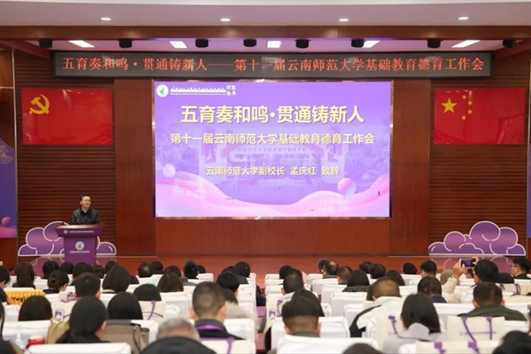 云南省委教育工委学生工作部部长和缘玉指出,面对新形势需把握四大方面内容:提高站位、深化认识,精准把握新时代德育工作核心要求;五育并举、融合赋能,探索具有云师特色的德育路径方法;贯通培养、衔接递进,构建全员全过程全方位育人新格局;聚焦实效、赋能成长,精准提升新时代德育工作质量水平。中共官渡区委副书记、区委教育工委书记郭怀广表示,区委、区政府将做好保障,共建五育融合示范区,培育时代新人。