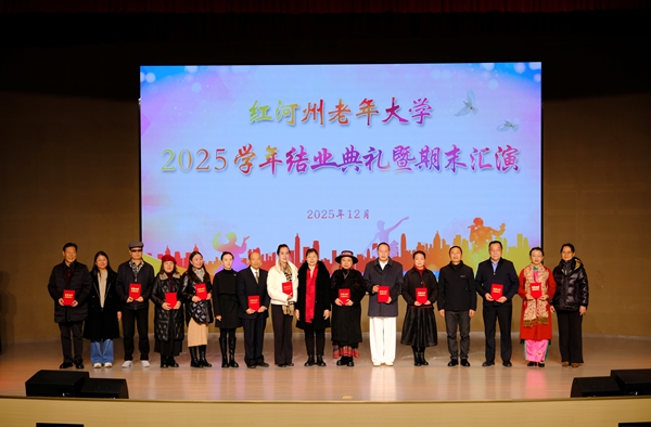 近日,云南省红河州老干部党校报告厅内欢声笑语萦绕,艺术氛围浓郁,红河州老年大学2025学年结业典礼暨期末汇演在此举行。学员们以饱满的热情、多样的才艺,共同打造了一场视听盛宴,充分展示了本学年的学习成果与积极向上的精神风貌。