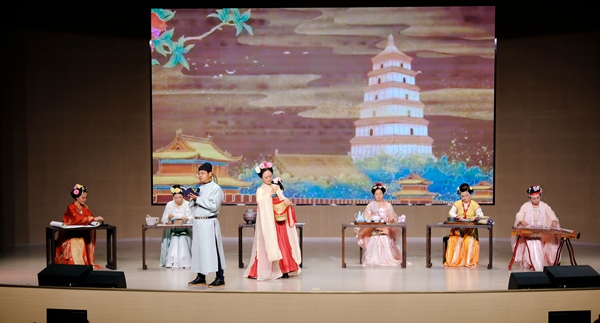 古筝班演绎的《沧海一声笑》旋律悠扬,令观众沉浸式感受经典乐曲的魅力;手风琴班、二胡班的演奏,充分展现了学员们刻苦练习的良苦用心。由诗词鉴赏与写作班路伟老师倾情创作、师生共同朗诵的《蒙自赋》,带领现场观众一同走进“满城尽染石榴光”的边陲胜地蒙自,去探寻它的过往,触摸它的当下,憧憬它的未来,深情的朗诵,触动了现场每一个人的心弦。