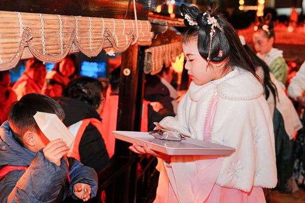 作为一部讲述昆明百年历史的行进式环境戏剧,《滇池夜月》少儿版以古时昆明人“暮夜赏月”的习俗为切入点,解锁“昆明八景”中的深厚人文内涵。演出沿水展开,通过滇歌帛曲、社鼓渔歌等场景的精心重塑,生动还原了明清大航运时代昆明的江南盛景,让杨升庵笔下“春城”的灵秀与五百里滇池“帆影重叠”的壮阔跃然眼前。与传统舞台演出不同,本剧以沉浸式环境为依托,让孩子们在表演中深度融入角色与场景,不仅实现了对家乡历史的认知与感悟,更开启了通往艺术、生活与学习的全新大门。