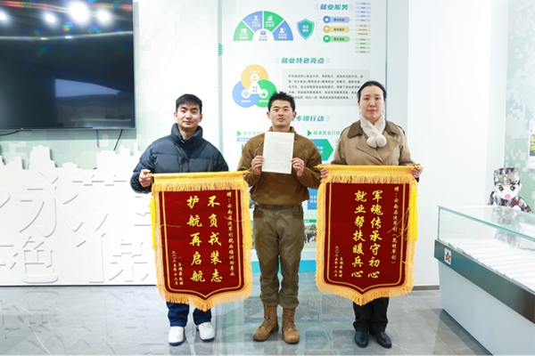 “李老师,我顺利入职了,新岗位适应得还不错!感谢你这段时间尽心尽力帮我找工作,你就像我们连队里的班长一样暖心,真的太感谢了!”12月29日,退役军人吕顺康带着两面锦旗和一封感谢信走进昆明军创园,交到园区就业部工作人员的手中,言语间满是感激。