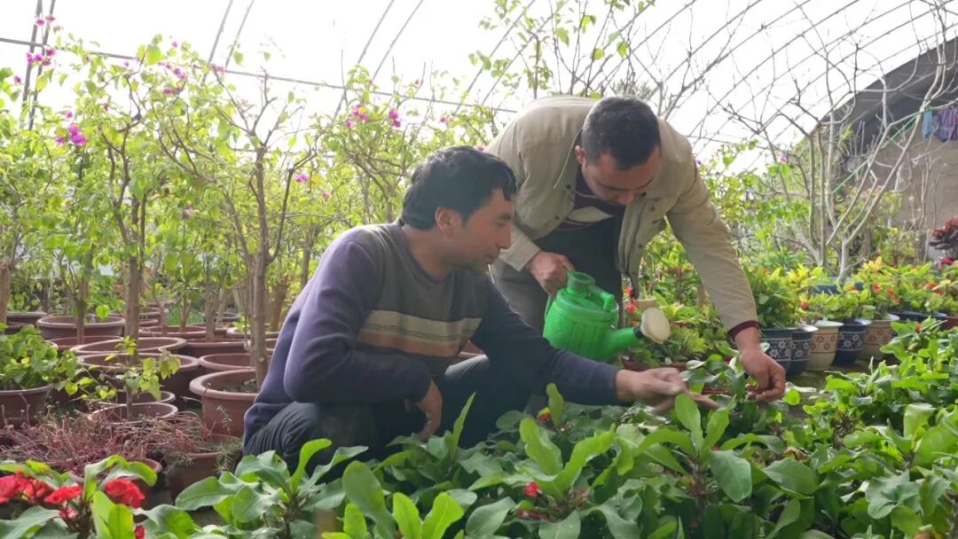 种植户艾亥提•艾麦提说:“我有3个大棚的花卉,品种超过100个,在师傅木萨江的帮助下,我的花卉都生长得很好,现在这里买花的人也多了,我的收入也越来越高。”