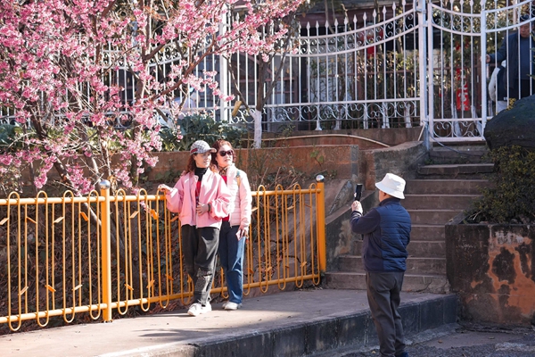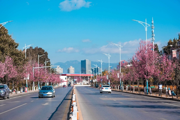 中心城区环山路是赏花的“打卡地”之一,道路两侧的冬樱花竞相绽放,粉嫩嫩的花瓣在阳光下通透灵动。马路上,车流穿梭于花海之间,随手一拍便是城市冬日的美好景致。人行道上,光影斑驳,路人花香盈袖,十分惬意。不少市民专程前来,或漫步赏花,或拍照留影,绘就一幅温馨的冬日画卷。