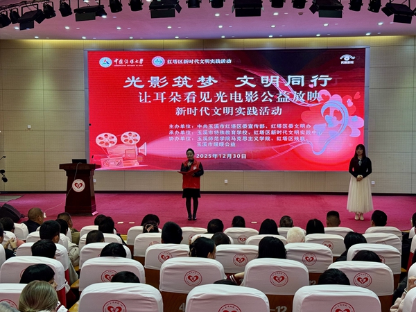 近日,云南省玉溪市红塔区委宣传部、红塔区委文明办联合玉溪市特殊教育学校、红塔区残联举办“光影筑梦•文明同行——‘让耳朵看见光’电影公益放映新时代文明实践活动”,100余名视障儿童、视障人士与志愿者在听觉构筑的光影世界中,共赴一场温暖的文化之约。